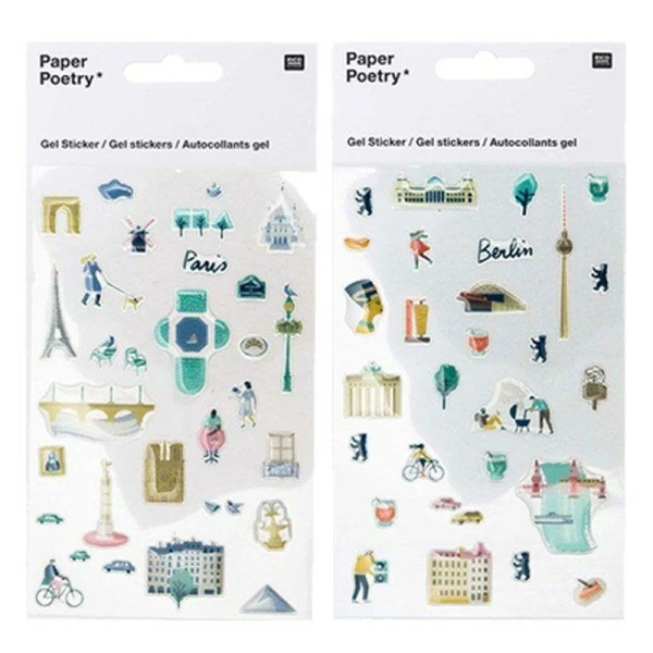 Ces stickers en gel Paris-Berlin de la marque Rico Design sur le thème des villes du monde embelliront toutes vos créations de scrapbooking ! Chaque planche est composée de 35 autocollants, de formes et dimensions différentes (0,3 à 3,5 cm) représentants les monuments emblématiques des villes du monde !