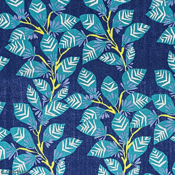 Ce superbe tissu est composé de coton 100 %, pour une laize de 140 cm. Très actuel et tendance, vous pourrez tout vous permettre avec ce tissu, de la création de vêtements à la confection d’accessoires. Avec ce tissu à motifs Feuillage sur fond bleu foncé très facile à coudre, lancez-vous dans la couture, et amusez-vous !
