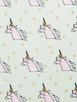 Données techniques pour Tissu Rico Toile cirée – Licornes – Fond vert menthe et or – Par 10 cm (sur mesure)