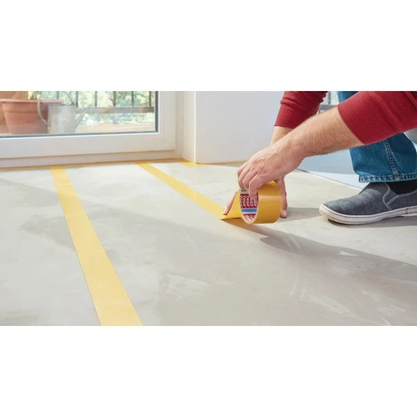 Le ruban adhésif double face extra-fort spécial sols irréguliers de Tesa est très polyvalent. Il permet de fixer la moquette et le PVC sur les sols intérieurs et extérieurs.
