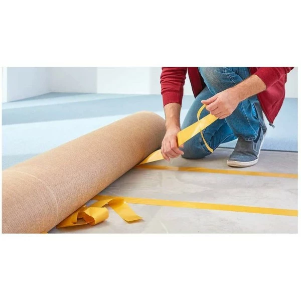 Ce ruban adhésif Tesa est conçu spécialement pour fixer des revêtements sur des sols irréguliers. Grâce à lui, c’est très simple de poser un revêtement type moquette ou sol en PVC.