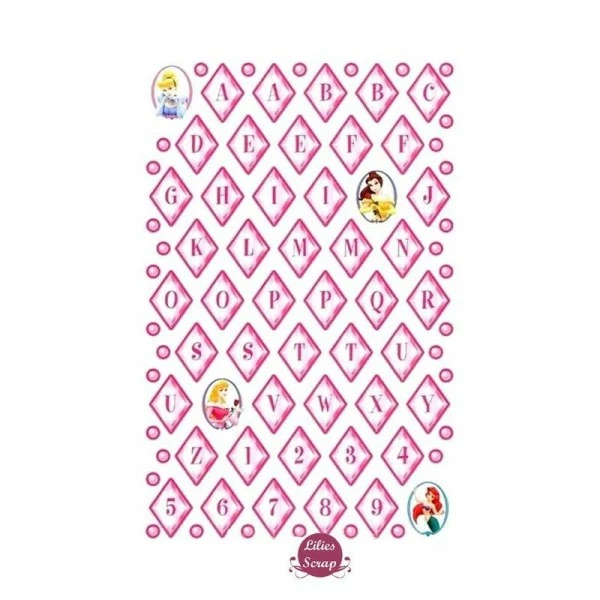 Données techniques pour Grande planche de stickers Alphabet Princesses 30 x 20 cm