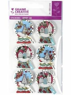 Graine Créative 6 Stickers 3D De Noël – Boules De Neige 5 Cm