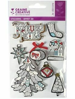Graine Créative 6 Stickers 3D Médaillons De Noël 4 Cm + 20 étiquettes Kraft Fanion