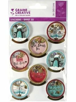 Graine Créative 8 Stickers Fun Effet 3D 5 Cm + 20 étiquettes Kraft Fanion