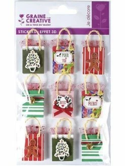 Graine Créative 8 Stickers 3D De Noël Hiver Blanc 8 Cm + 20 étiquettes Kraft Fanion
