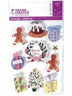Graine Créative 10 Stickers 3D Décorations De Noël 5 Cm + 20 étiquettes Kraft Fanion