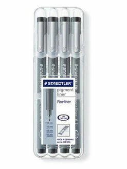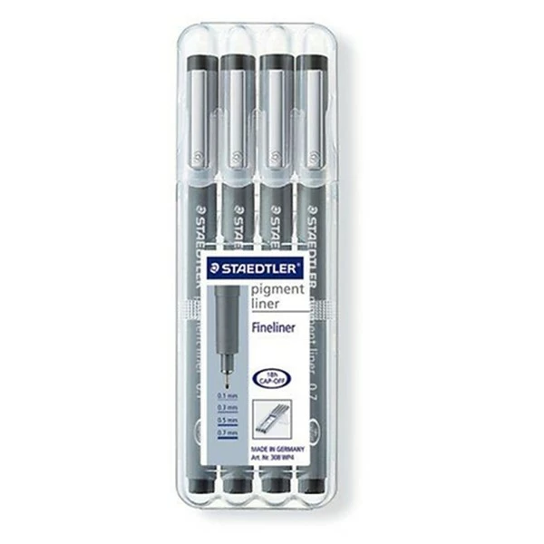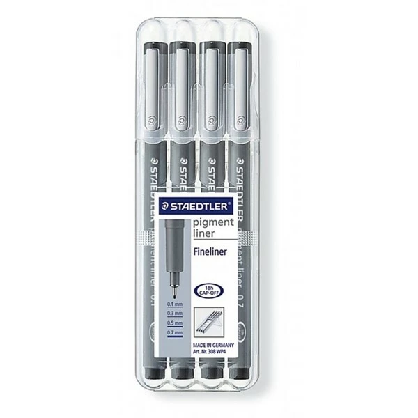 Description de Staedtler 308 WP4 Etui rigide de 4 feutres pigment liner