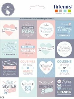 Très joli, cet assortiment de stickers vous permettra d’embellir tous vos projets créatifs en quelques secondes seulement et de faire passer un message d’amour à vos proches. Chaque membre de la famille à son petit autocollant, que ce soit Papi, Mami, Tonton, Tati ou même les cousins. Alors n’hésitez pas et craquez pour ces jolis stickers !