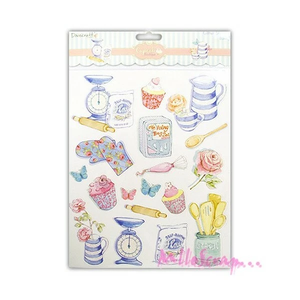 Lot de 16 stickers de la marque Dovecraft, collection “Cupcakes”.