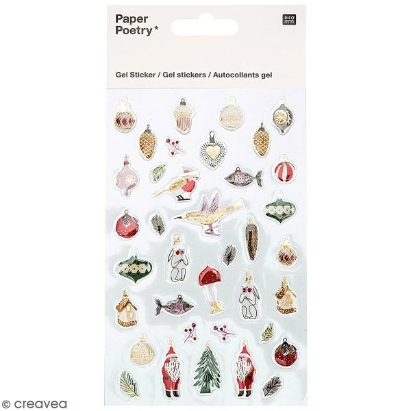 Description de Stickers gel Rico Design – Suspensions de Noël Classique – 37 pcs