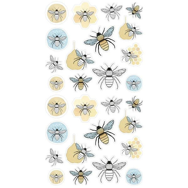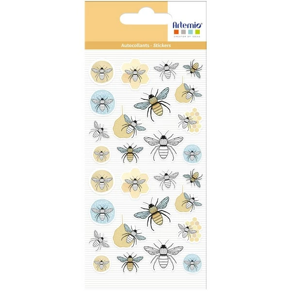 Cette planche de 28 stickers 3D Abeilles appelés aussi stickers puffies de la collection Mon essentiel d’Artemio seront parfaits pour le scrapbooking, la carterie et les activités manuelles sur le thème des Abeilles.