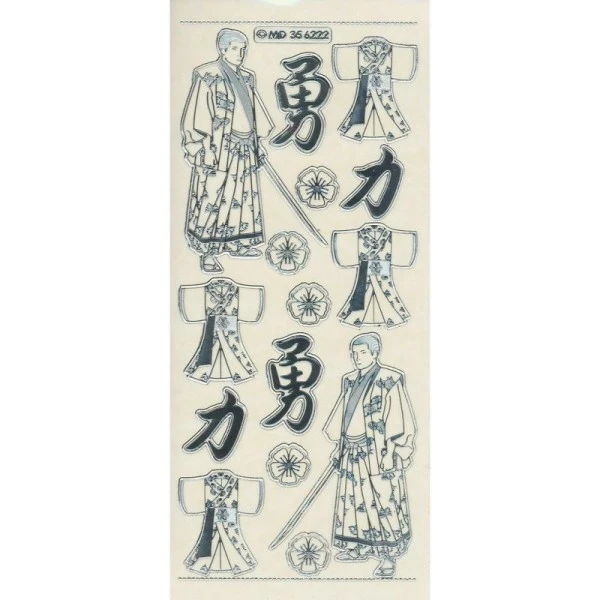 Description de Transparent Stickers Double Embossage Samouraï Asie MD356222 argenté