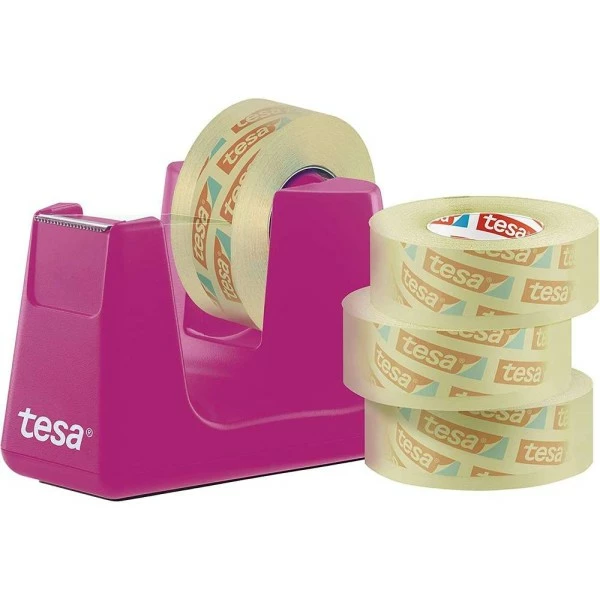 TESA – Dévidoir de bureau Easy Cut Smart + 4 rouleaux – Rose