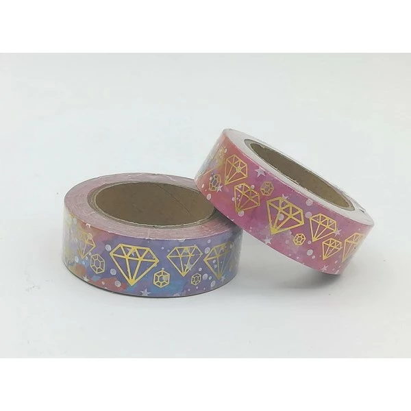 Rouleau de Washi tape foil bleu à motif diamants dorés