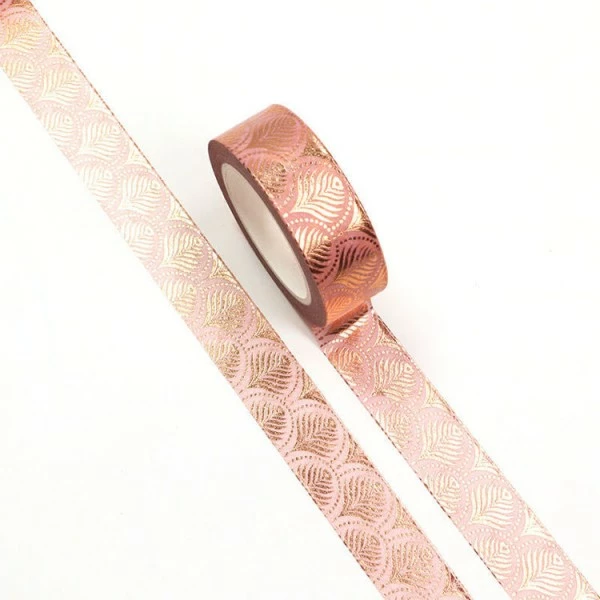 Description de Masking tape feuille de palmier rose et or 15mm x 10m