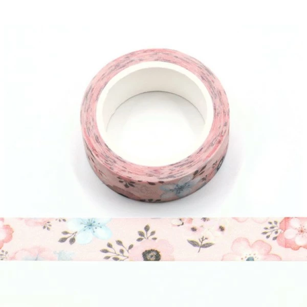 Description de Masking tape glitter fleurs rose pâle scintillante – 15mm x 5m – G070