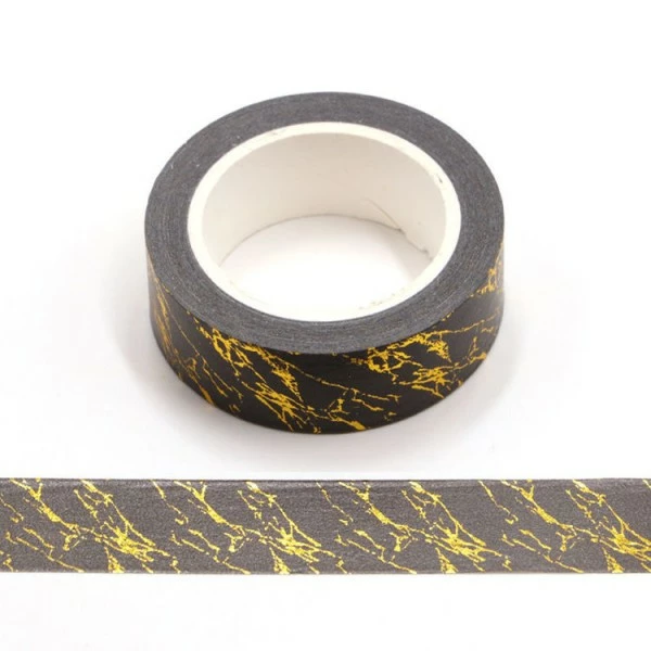 Description de Masking tape métallisé effet marbre noir et or – 15mm x 10m