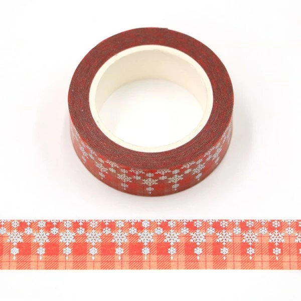 Description de Masking tape métallisé quadrillage montagnard flocons de neige 15mm x 10m