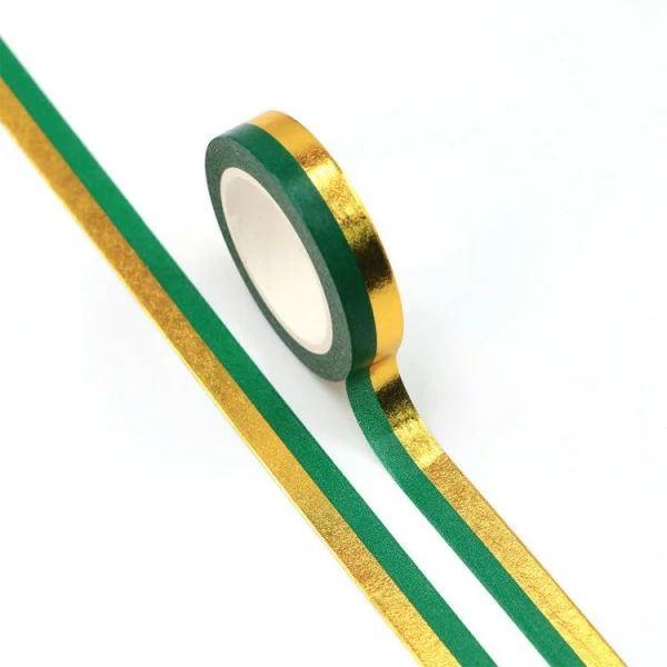 Description de Masking tape métallisé rayures or et vert 10mm x 10m