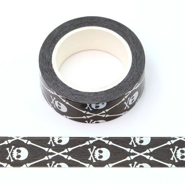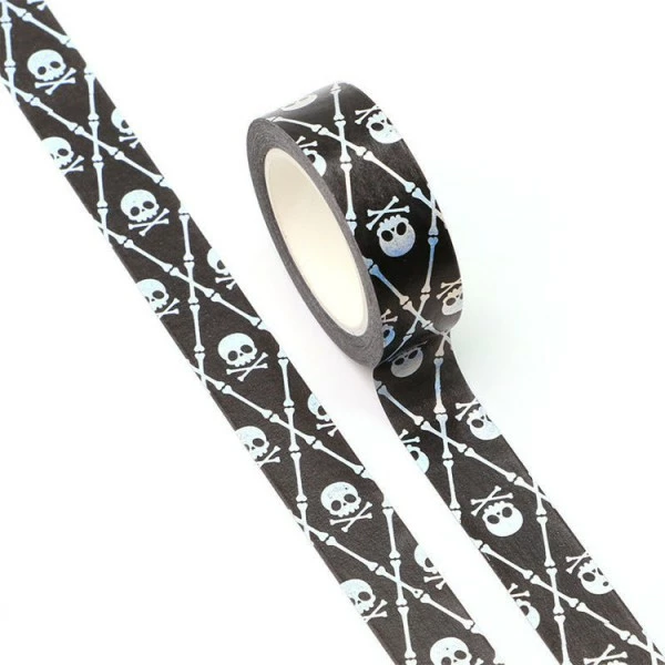 Description de Masking tape métallisé tête de mort Halloween 15mm x 10m