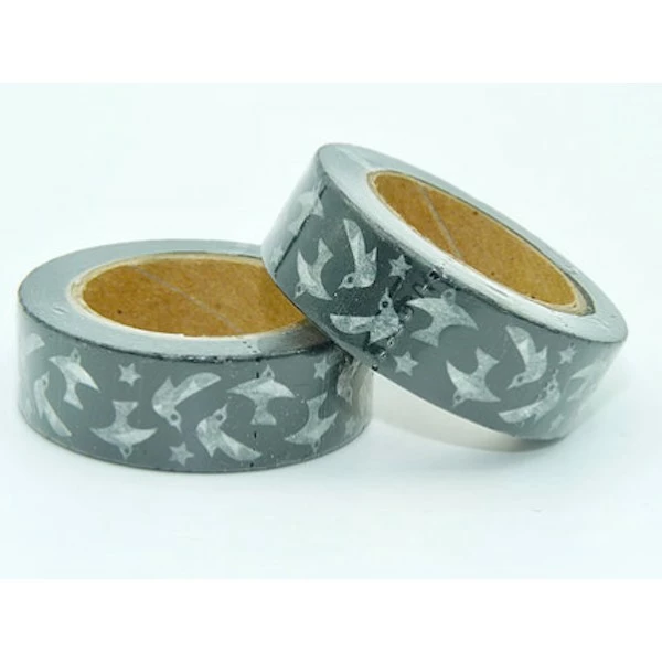 Description de Masking tape noir oiseaux blancs