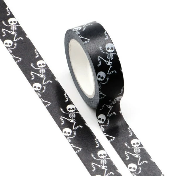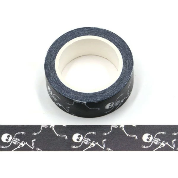 Description de Masking tape noir squelette blanc – 15mm x 10m – W521