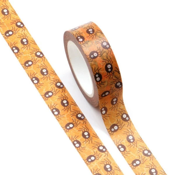 Description de Masking tape orange araignées noires – 15mm x 10m – W519