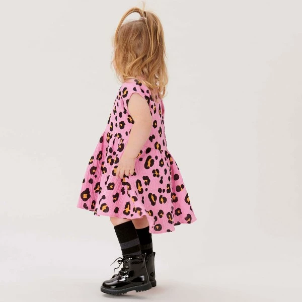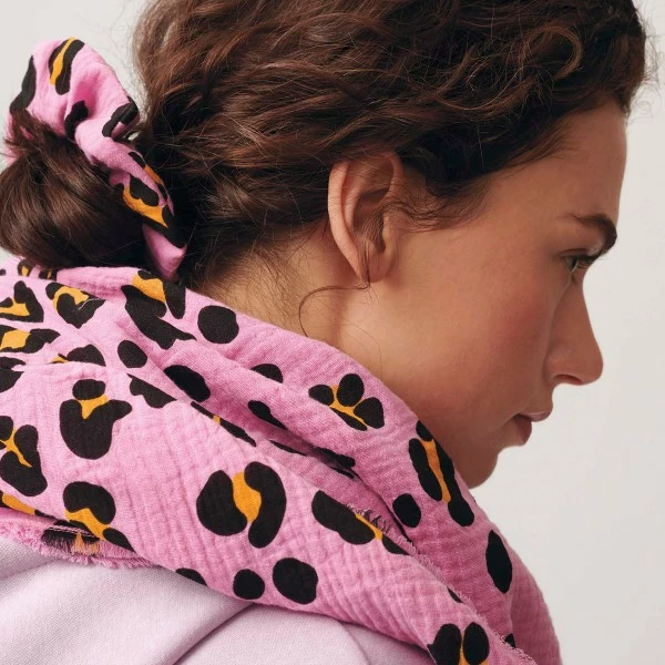 Ce superbe tissu double gaze de coton Motif Léopard Rose sera idéal pour la couture de vêtements et d’accessoires tendances.
