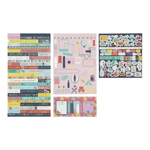 Kit de décoration journal intime Voyage. Personnalisez votre agenda, votre carnet ou votre journal en un clin d’œil grâce à ce kit décoratif ! Que vous soyez expert ou débutant, vous pourrez avoir un superbe rendu vous donnant encore plus envie d’organiser des sessions DIY ! Ce joli set sur le thème du voyage décore d’une part votre agenda, et vous permet, d’autre part, de mieux organiser votre vie au quotidien. Illustrez dès maintenant vos souvenirs dans votre agenda ! Contenu- 2 planches de stickers. – 1 planche de pochoirs. – 7 blocs de notes repositionnables. Motifs imprimés à l’aide d’encres végétales sur du papier certifié FSC issu de plantations éco-responsables.