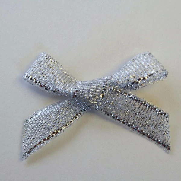 Description de 10 x Noeud en Ruban Lurex Argenté Appliques Mercerie Scrapbooking