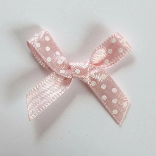 Description de 10 x Noeuds à Pois en Ruban Satin 7mmRose Clair – 001070