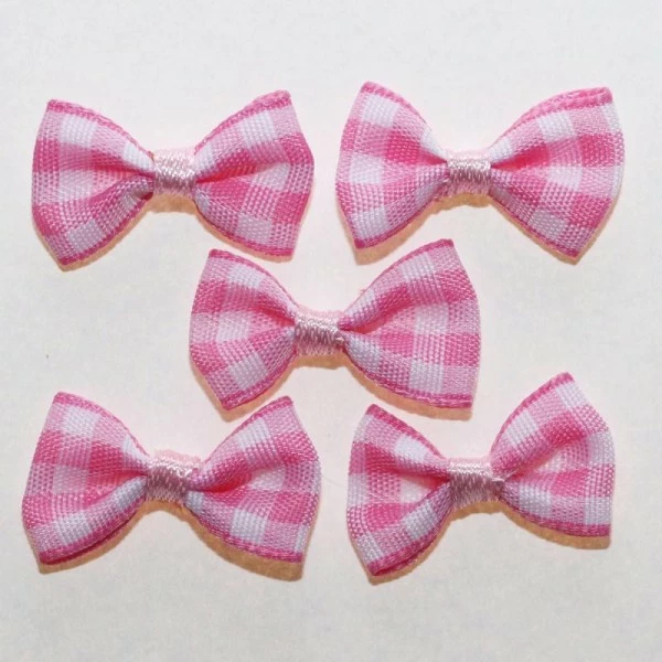 Description de 20 x Noeuds en Ruban Vichy CarreauxRose -2378
