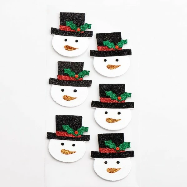 Données techniques pour Autocollant Paillettes Artisanal 3D en Forme de Bonhomme de Neige x 6 – Scrapbooking Déco Noël