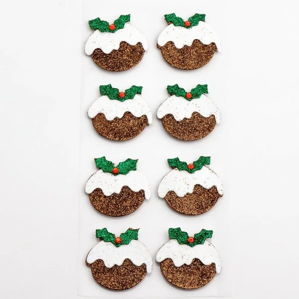 Description de .Autocollant Paillettes Artisanal 3D en Forme de Christmas Pudding x 8 – Scrapbooking Déco Noël