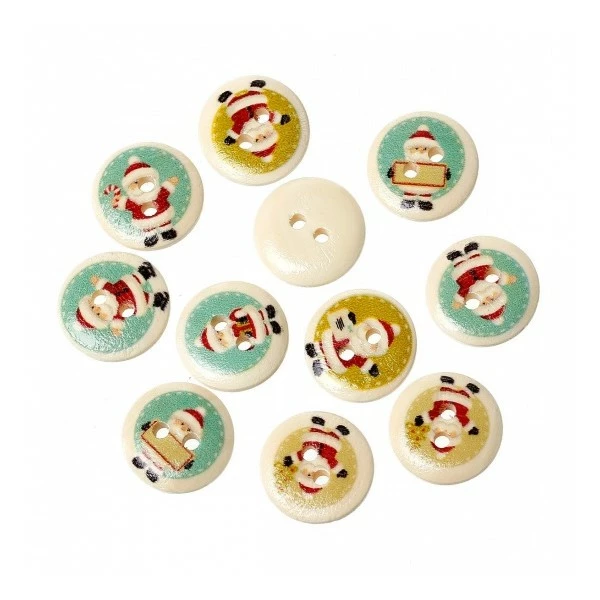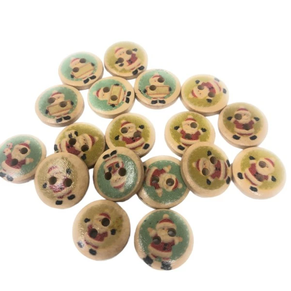 Description de Bouton de Noël en Bois – Motif Père Noël 15mm – Lot de 25