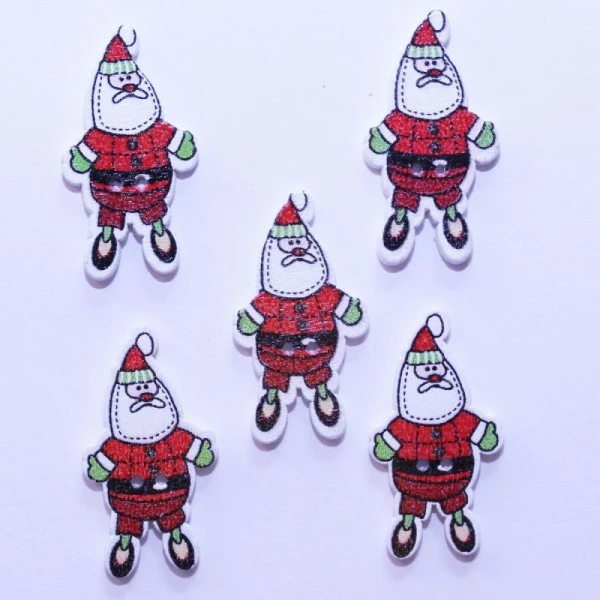 Description de Bouton de Noël en Bois – Père Noel / Santa Clause 19mm – Lot de 10