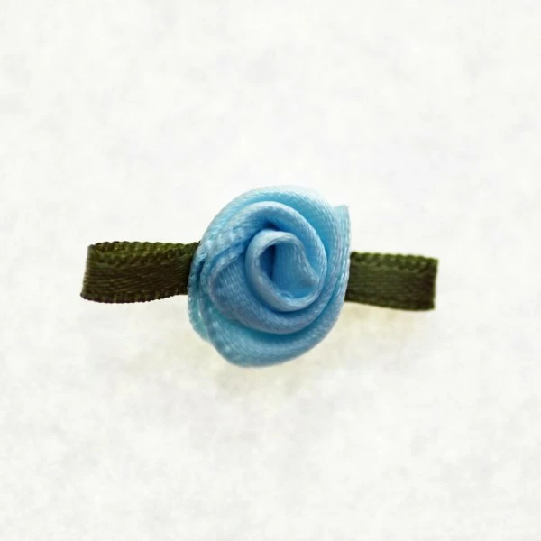 Embellissement en ruban satinFleur / Rose bleu avec feuille vert
