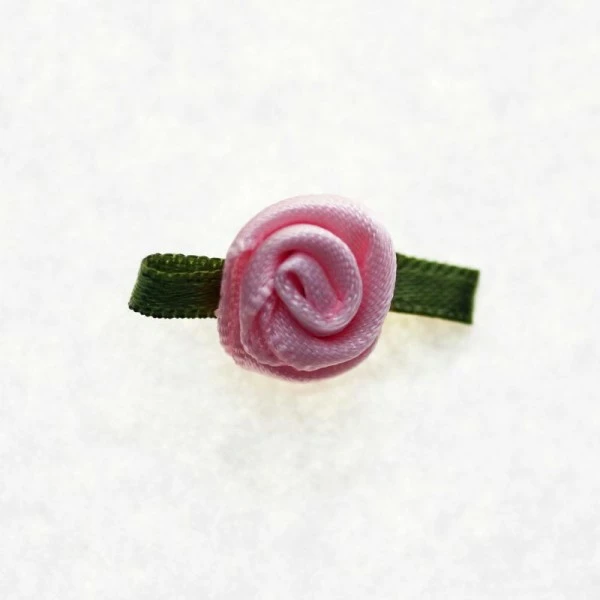 Embellissement en ruban satinFleur / Rose rose avec feuille vert
