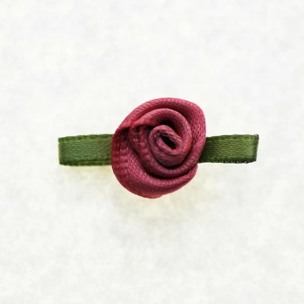 Embellissement en ruban satinFleur / Rose vieux rose avec feuille vert