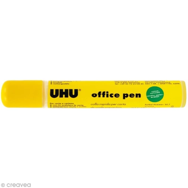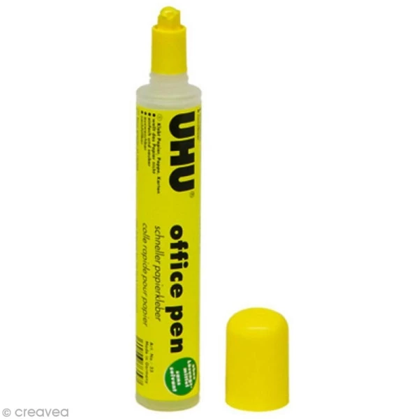 Le stylo colle UHU Office pen de 60 gr est un gros tube de colle transparente à bout carré de précision. Pratique, économique et idéal pour tous les travaux nécessitant un collage de papier propre, l’Office pen de UHU sera parfait pour le bureau. La colle sèche rapidement et le papier ne gondole pas. Vous pourrez l’utiliser pour coller le papier, le carton, les étiquettes, les photos et le polystyrène expansé.
