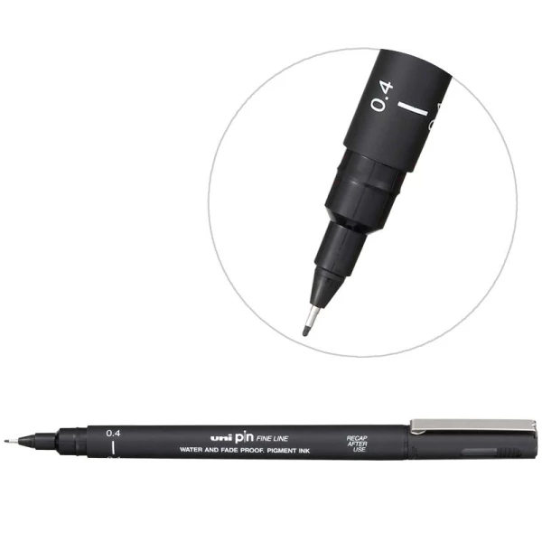 Stylo feutre technique à pointe calibrée 0,4 mm noir pour écrire, dessiner et annoter avec précision.