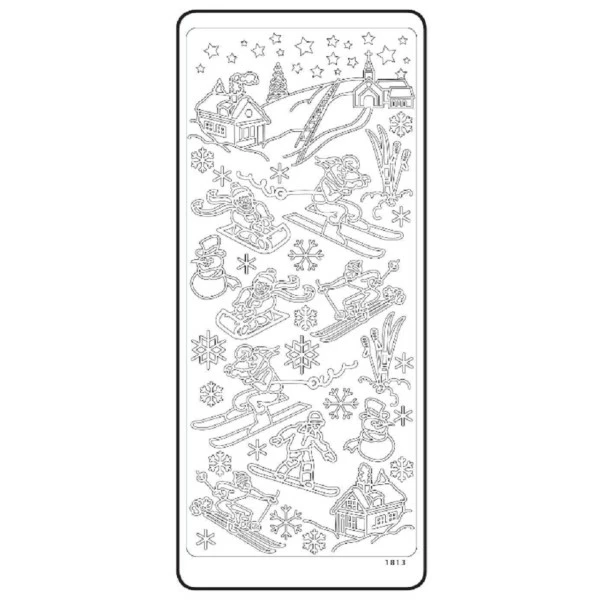 Description de Planche de stickers peel off argenté scène de vacances d’hiver