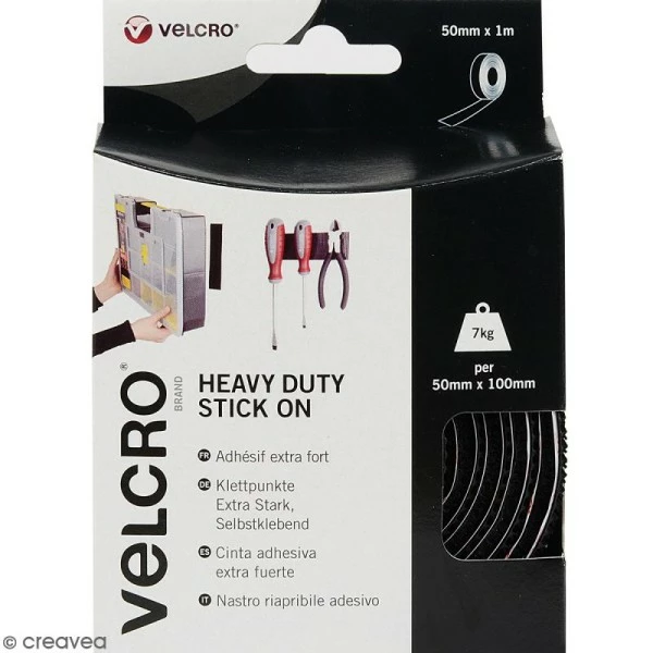 Le plus du produit : Ce velcro en bande vous permettra de remplacer les clous, les vis, également les rubans adhésifs et la colle. Il supportera 7 kg de charge d’accroche. Laissez prendre 24 h pour plus d’efficacité !