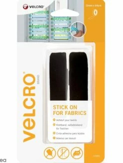 Description de Ruban Velcro pour tissus – A coller – Noir – 19 mm x 60 cm