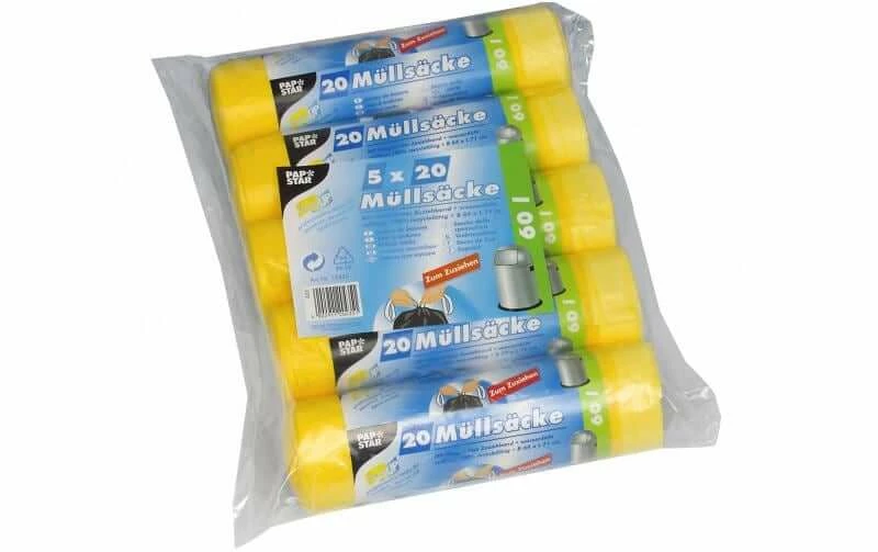 Couleur de base: Jaune, Parfumé: Non, Qualités conscientes: Aucune propriété, Unité d’emballage: 100 Pièce/s, Volumes: 60 l, Sangle de transport: Non