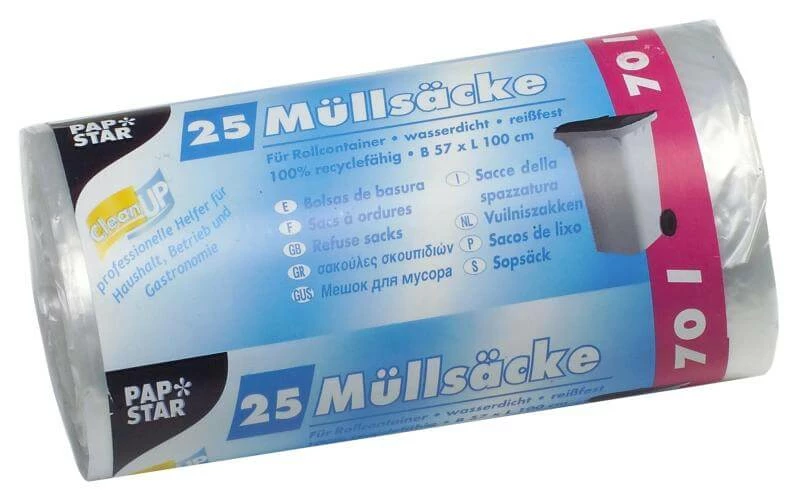 Couleur de base: Transparent, Parfumé: Non, Qualités conscientes: Aucune propriété, Unité d’emballage: 25 Pièce/s, Volumes: 70 l, Sangle de transport: Non