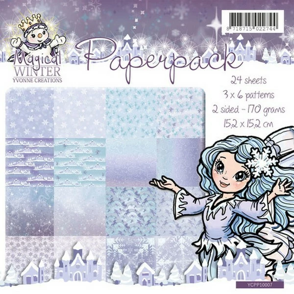 Description de 24 Papiers scrapbooking 15,2 x 15,2 cm album faire part carte Yvonne Création MAGICAL WINTER