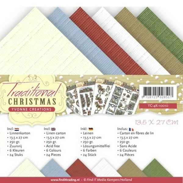 Description de Bloc de 24 cartons en fibres de lin 13,5 x 27 cm Yvonne créations TRADITIONAL CHRISTMAS