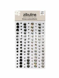 Lot de 120 strass à coller. 4 tailles différentes. Diamètres de 3 à 7 mm. Chaque planche comporte 3 couleurs. Existe en 5 planches de couleurs différentes. Zibuline propose un large choix de pastilles autocollantes. Ces embellissements, destinés à être collés, permettent de donner du relief à vos réalisations.